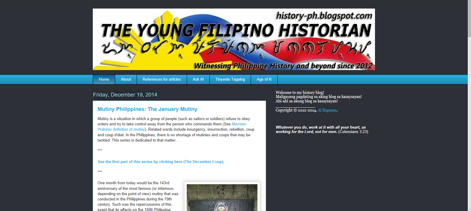 | Facebook page of the Young Filipino Historian as of 2016 |